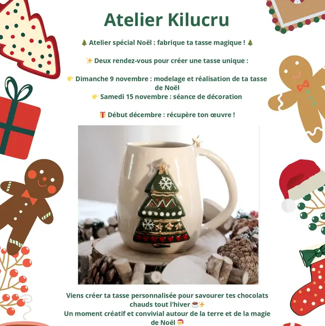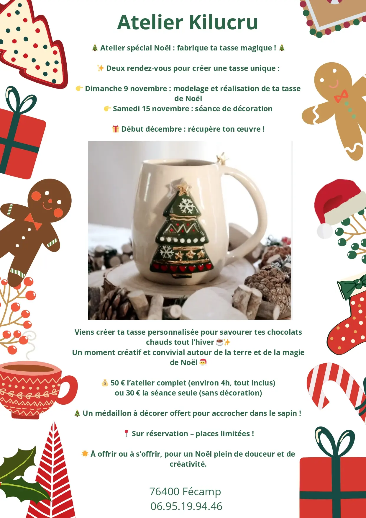 - Dimanche 9 novembre : modelage et réalisation de la tasse de Noël