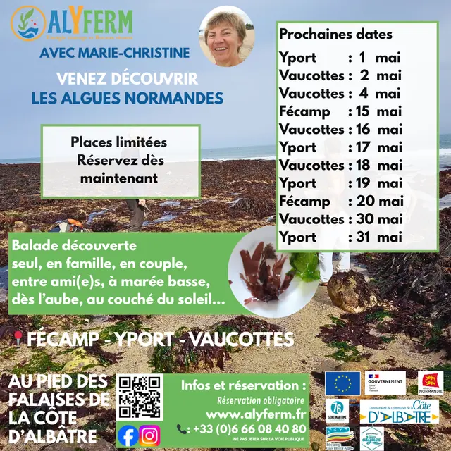 Venez découvrir les algues normandes du littoral avec Marie-Christine. Balade découverte seule, en famille, en couple, entre ami(e)s, à marée basse, dès l'aube, au couché de soleil...