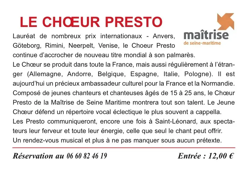 CONCERT "Choeur Presto" de La Maîtrise de Seine-Maritime.