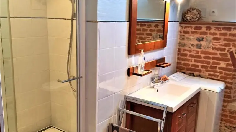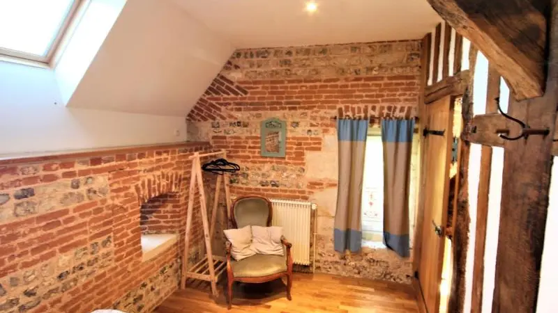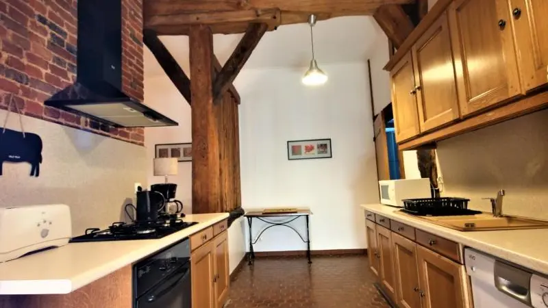 In a former 16th-century monastery, a cosy holiday cottage in the heart of a farm. Kitchen open to living-dining room. 1 double bedroom (160 cm), bathroom with WC and washing machine. Possibility of 2 additional beds.