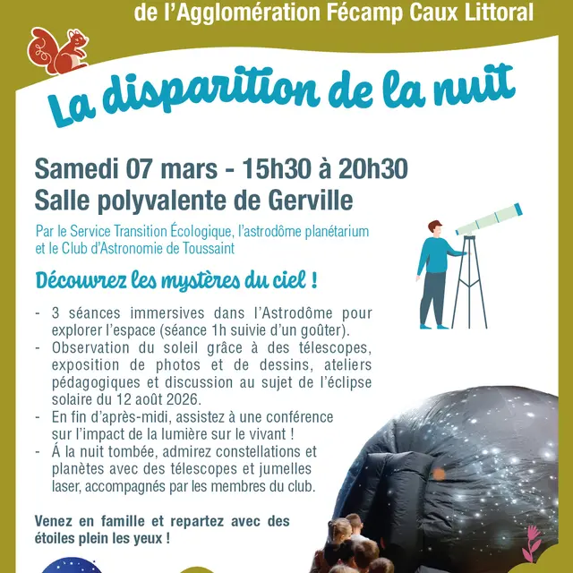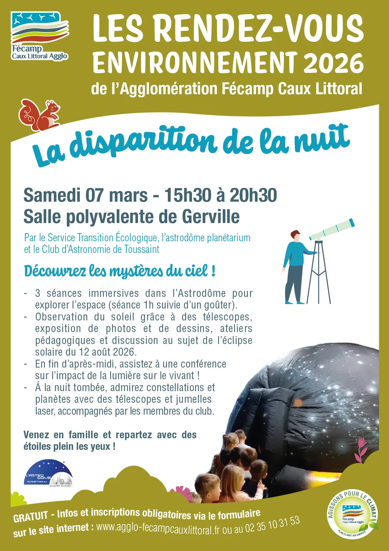 Avec le Service Transition écologique de l’Agglomération, l’astrodôme planétarium et le Club d’Astronomie de Toussaint.