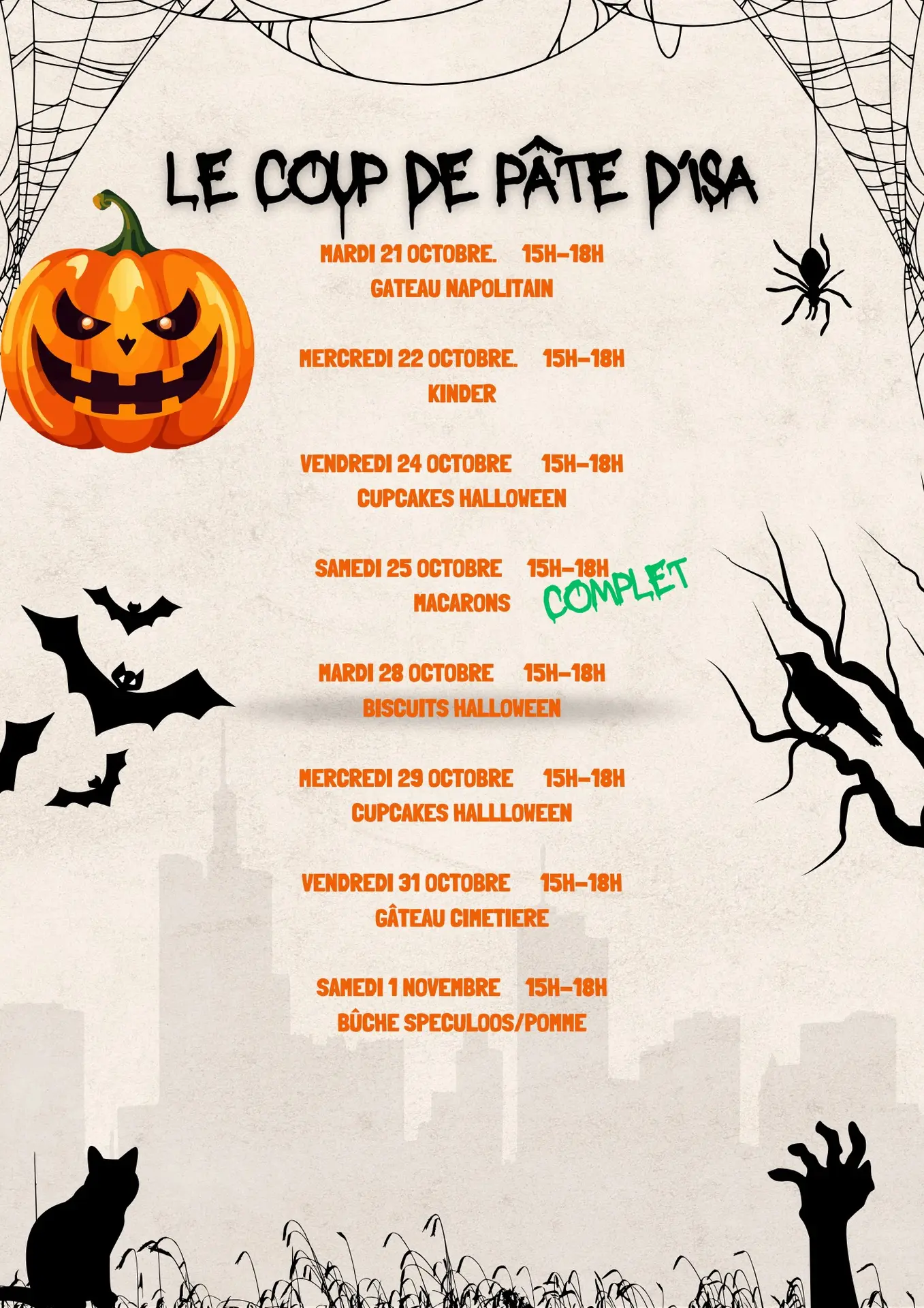 Découvrez le planning gourmand concocté par Le Coup de Pâte d'Isa pour les vacances de la Toussaint !