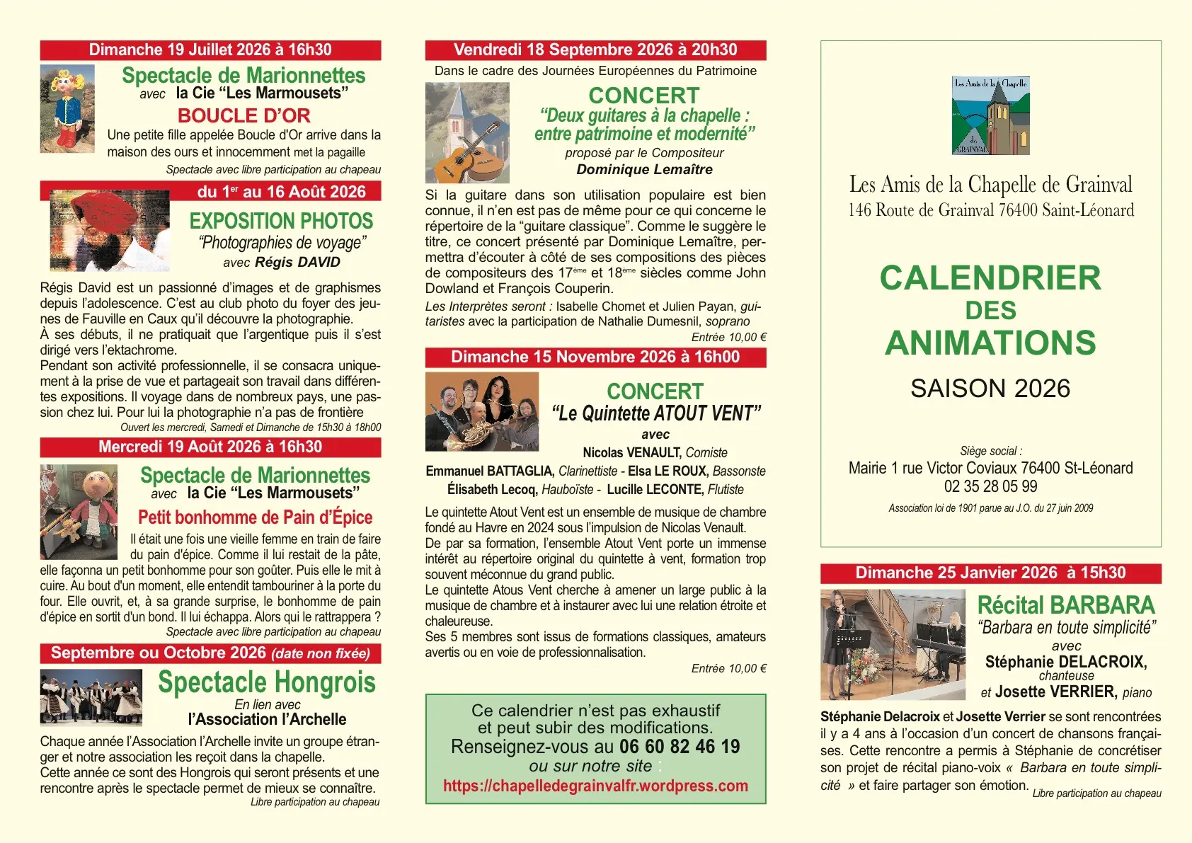 Réservations au 06 60 82 46 19