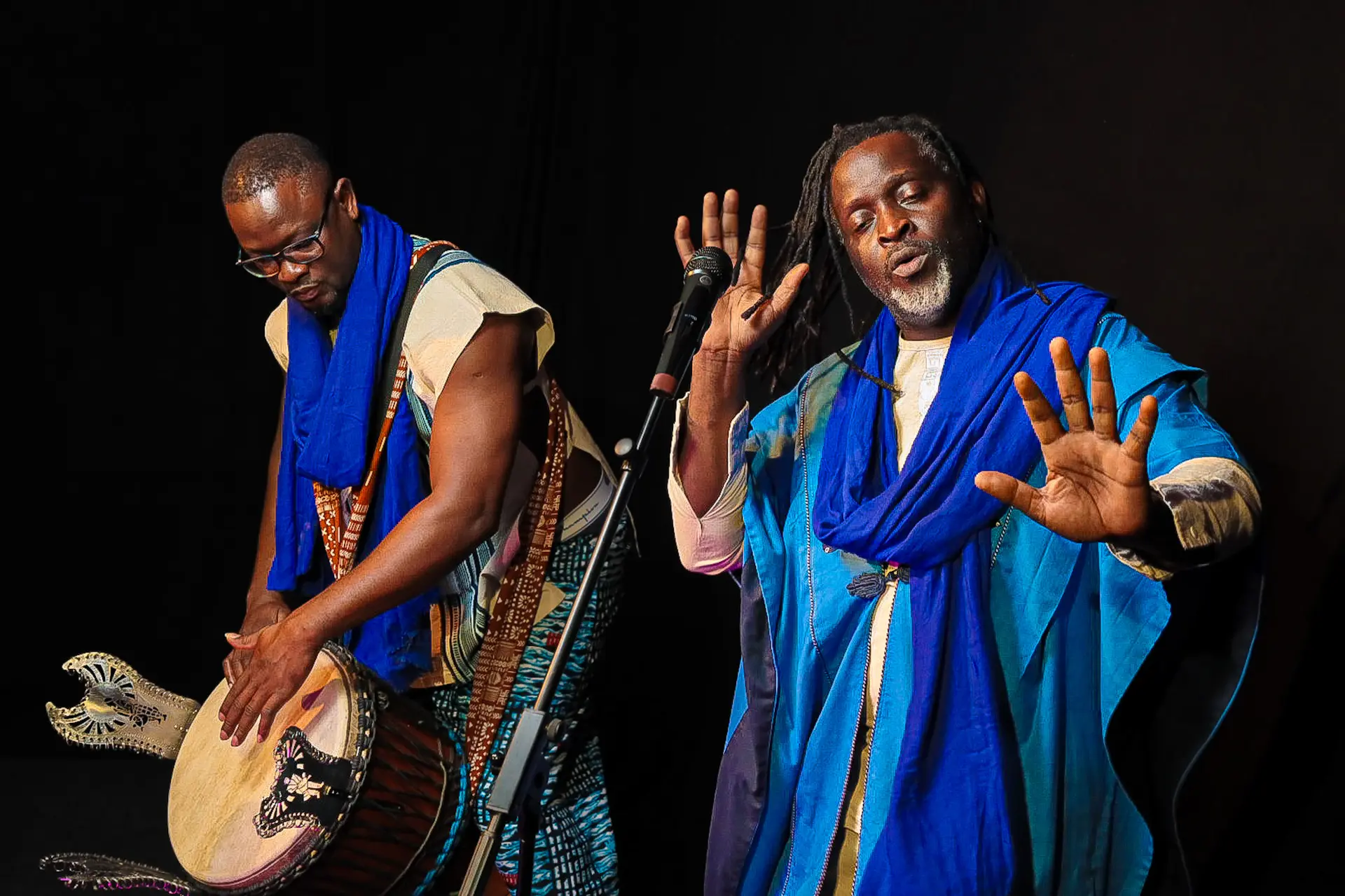 Ce spectacle est une rencontre et un voyage : celui du conteur congolais Ulrich N’Toyo et du griot musicien Madou Konaté, originaire de Côte d’Ivoire.